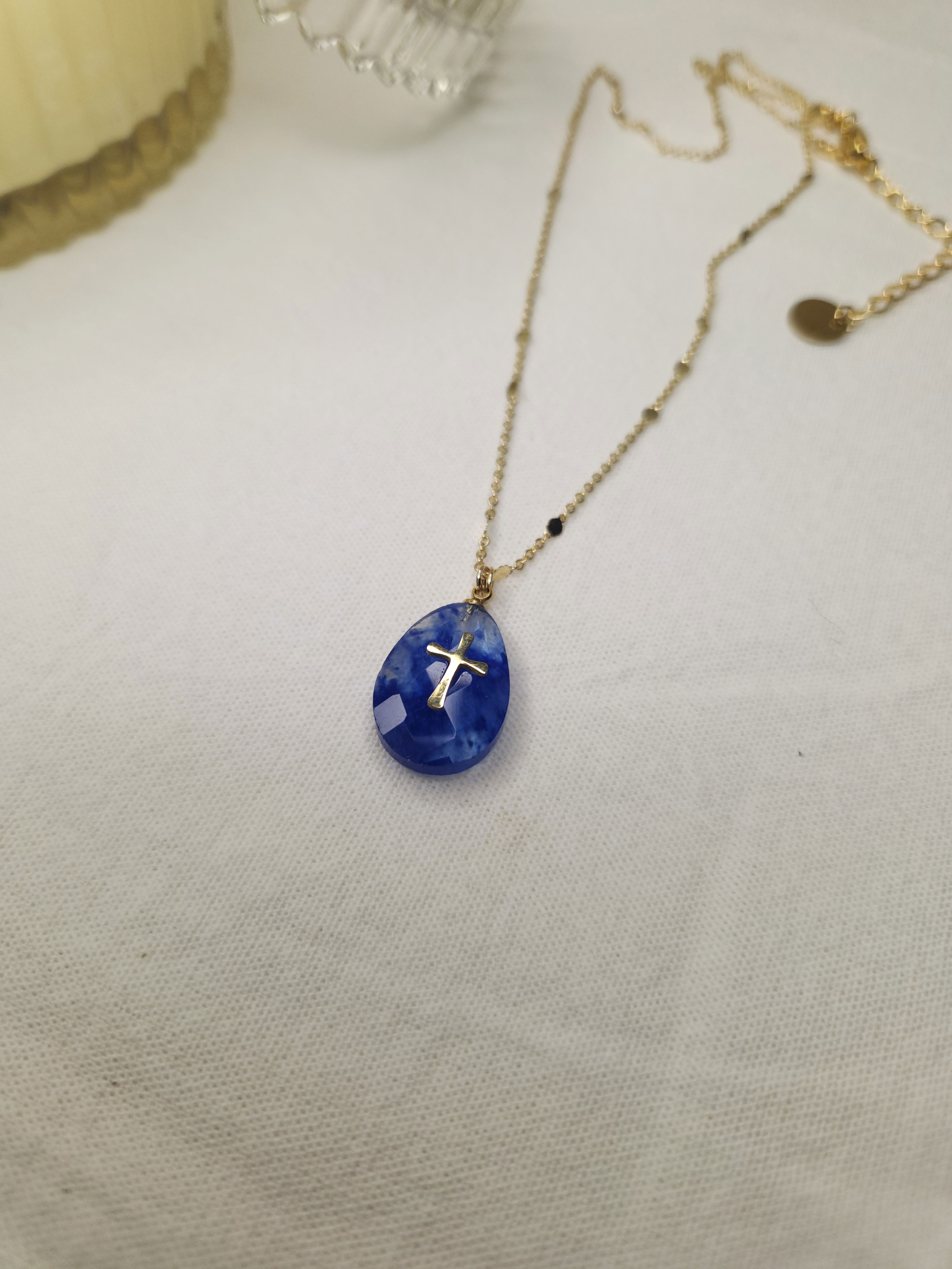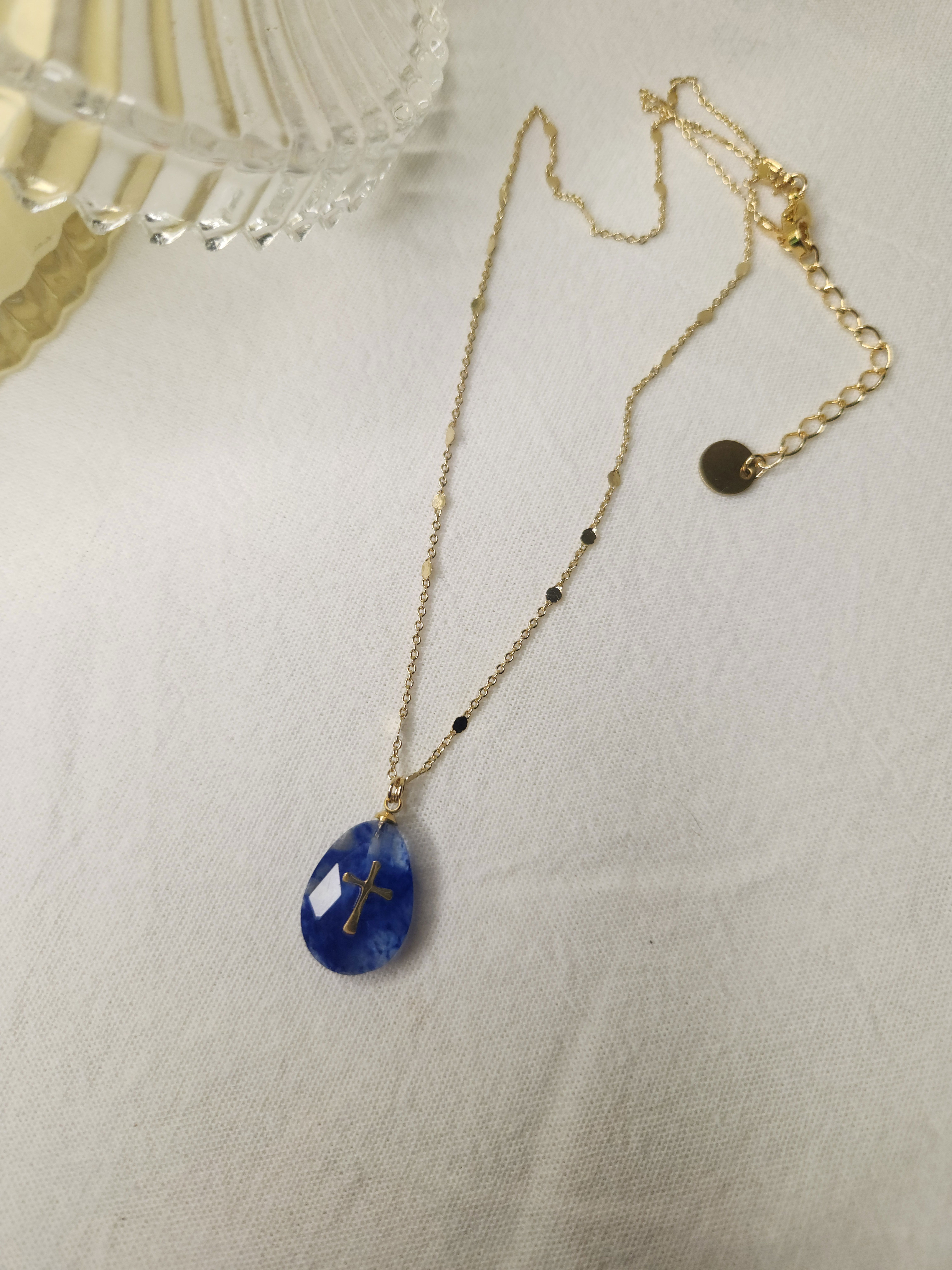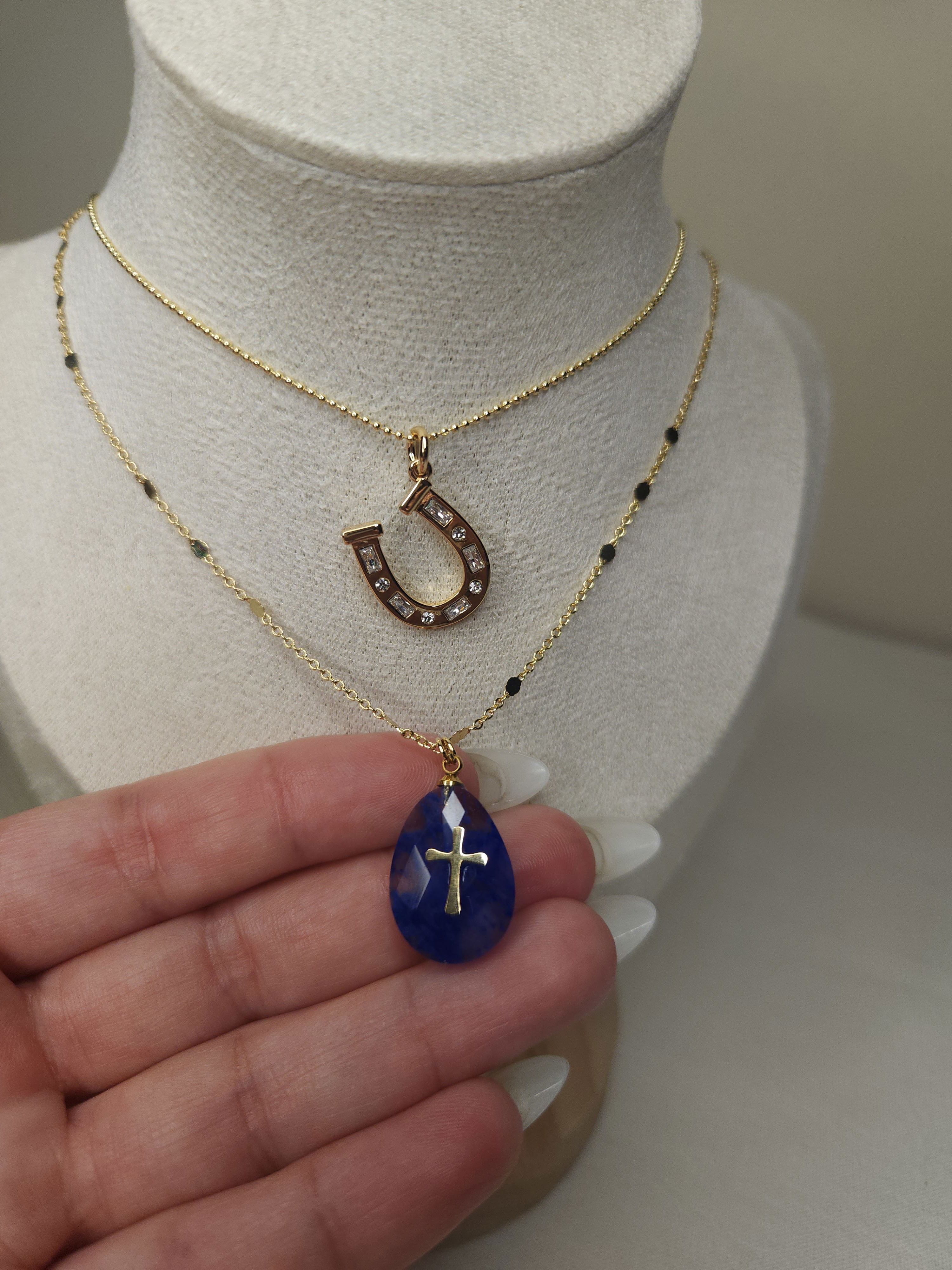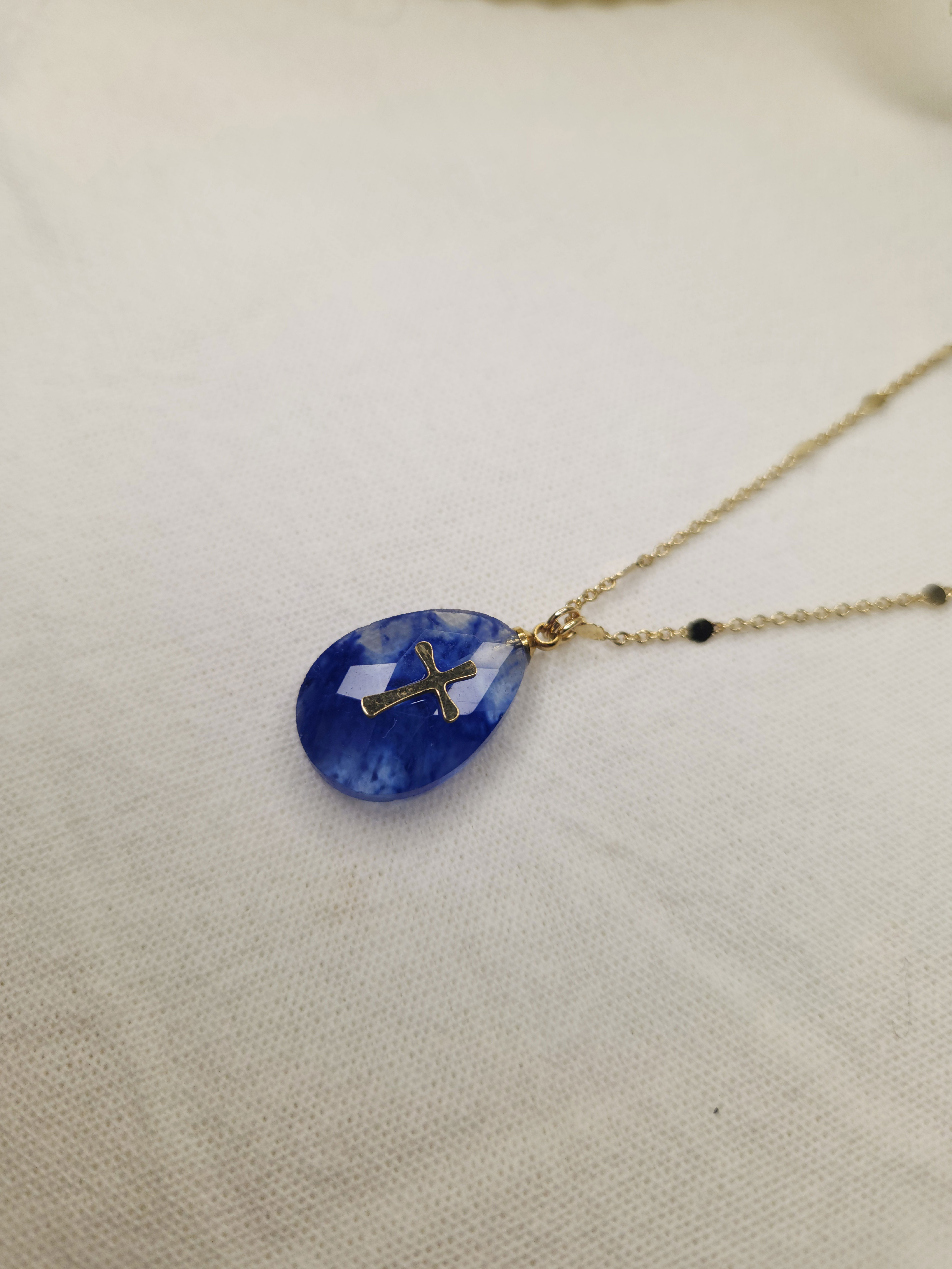 Conjunto en oro laminado con cadena destello finita y piedra natural lapislázuli.