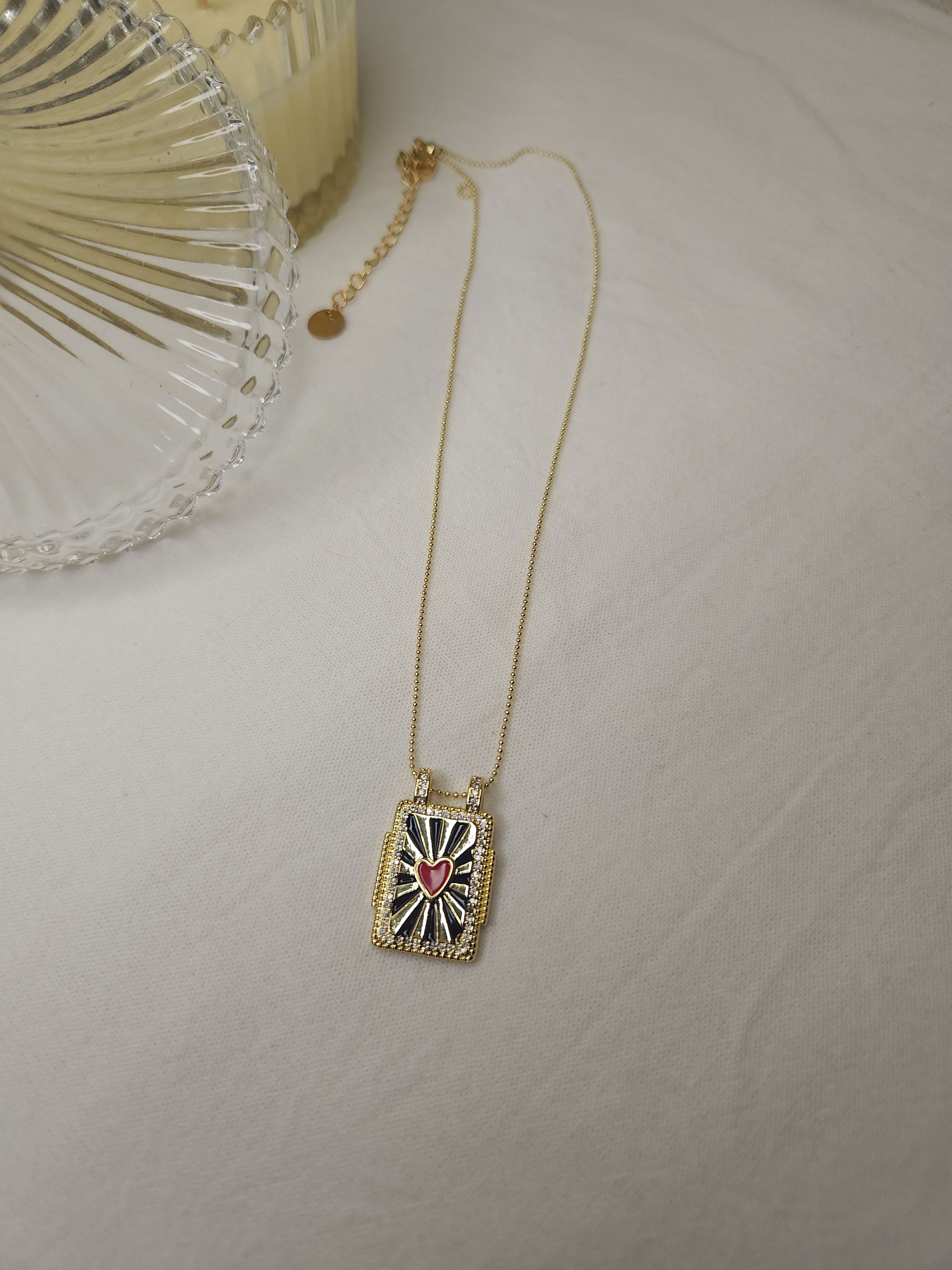 Conjunto en oro laminado con cadena finita militar y dije placa esmaltada corazón.