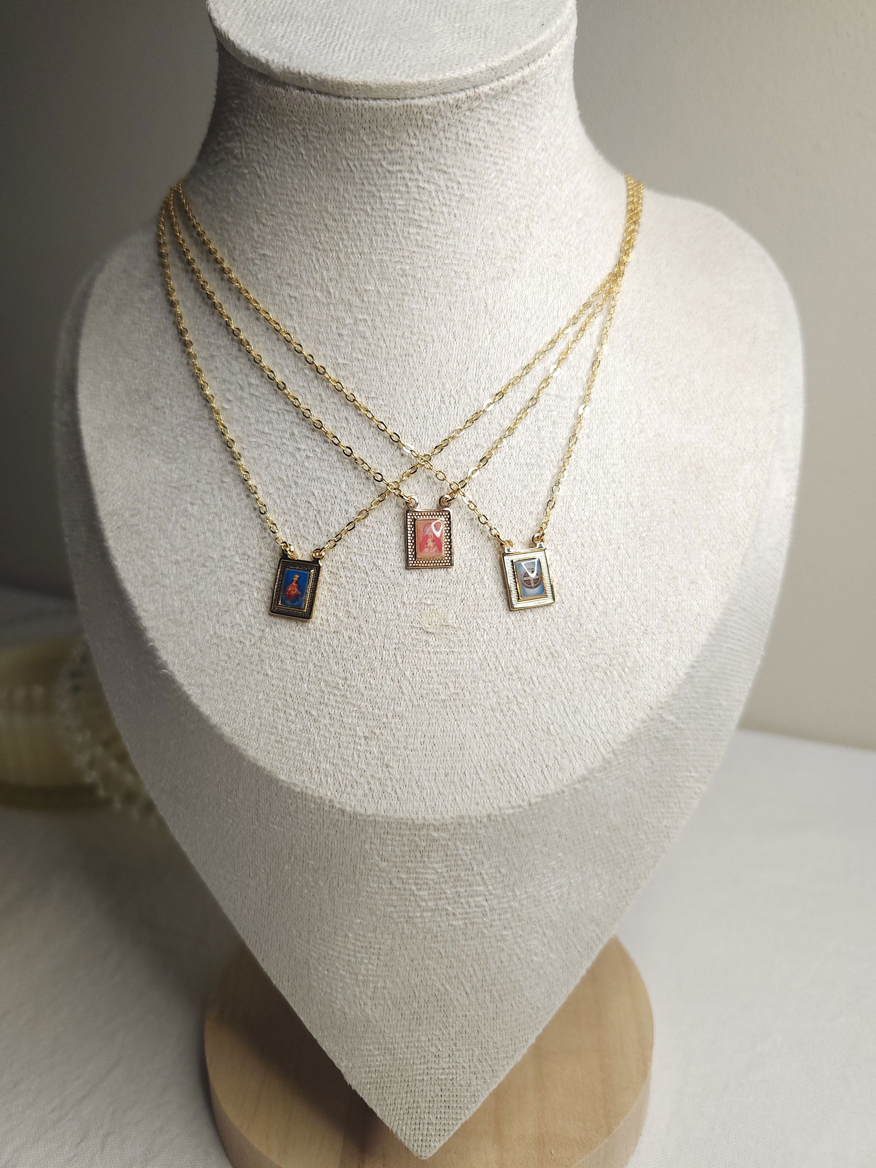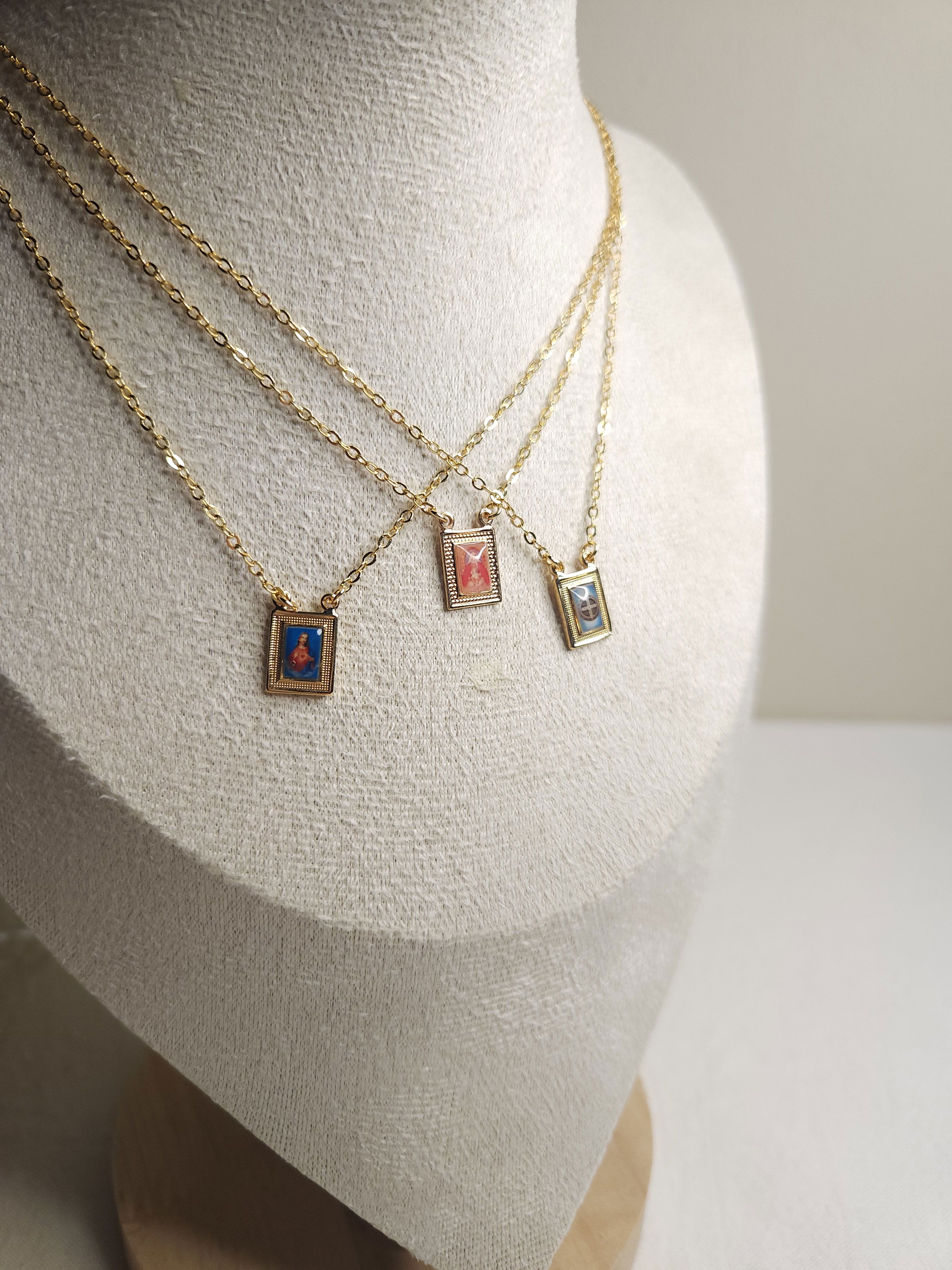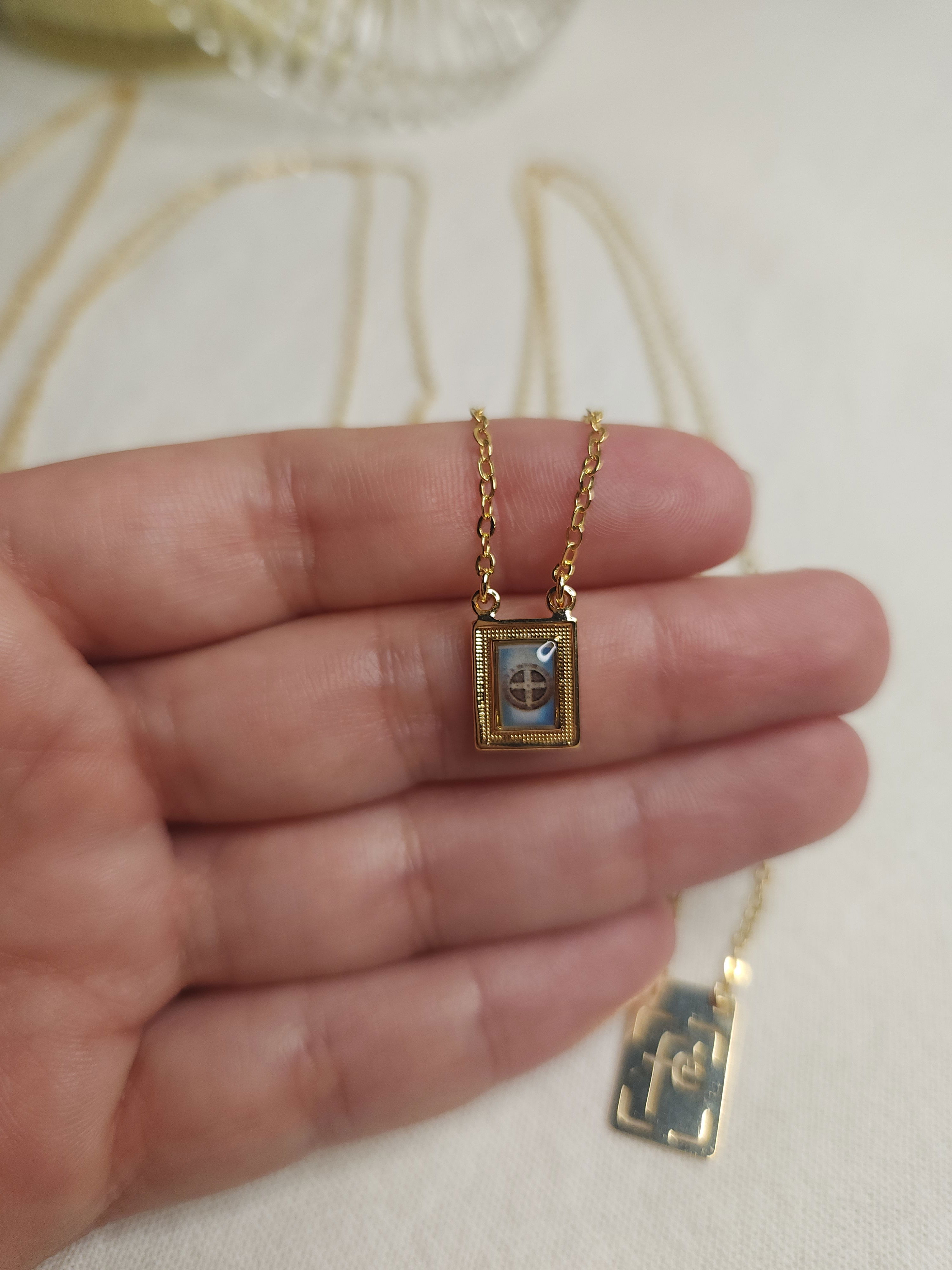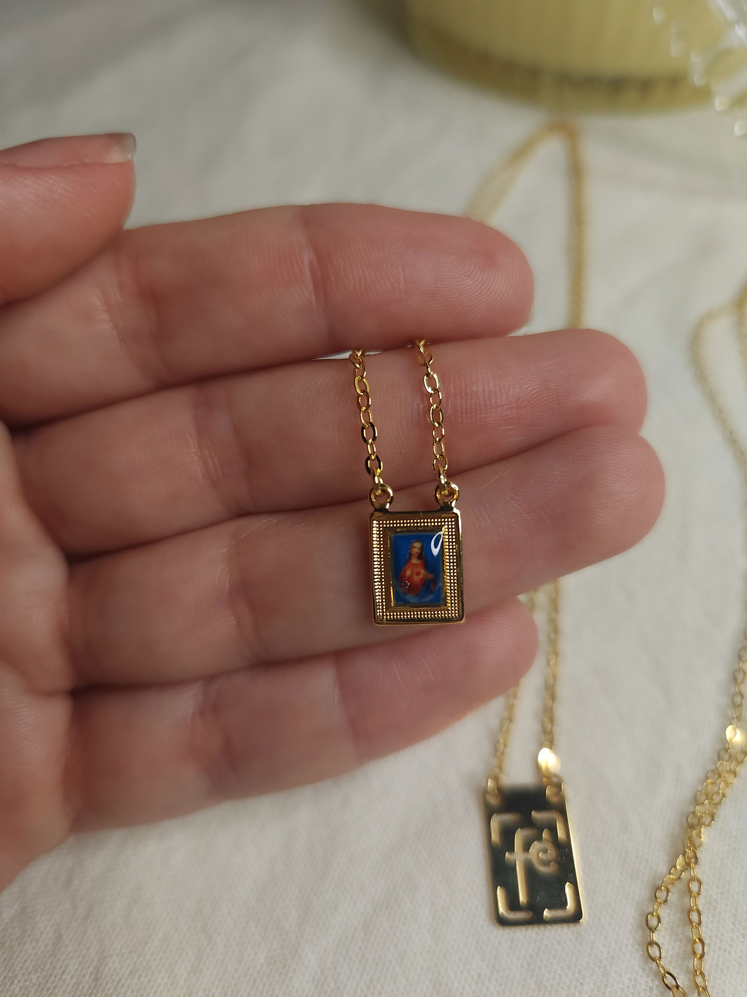 Medida dije escapulario mini: 10 mm x 8 mm.