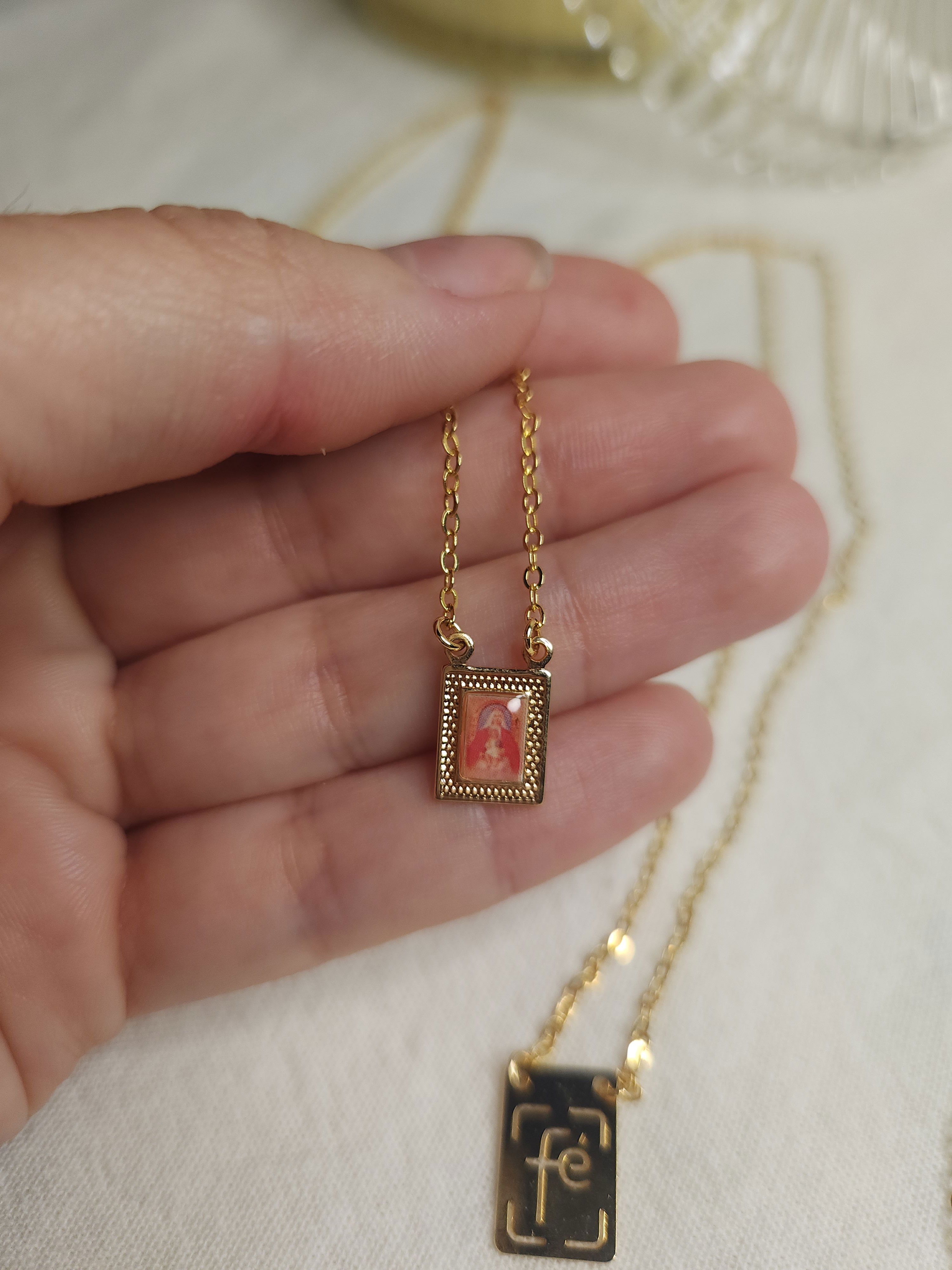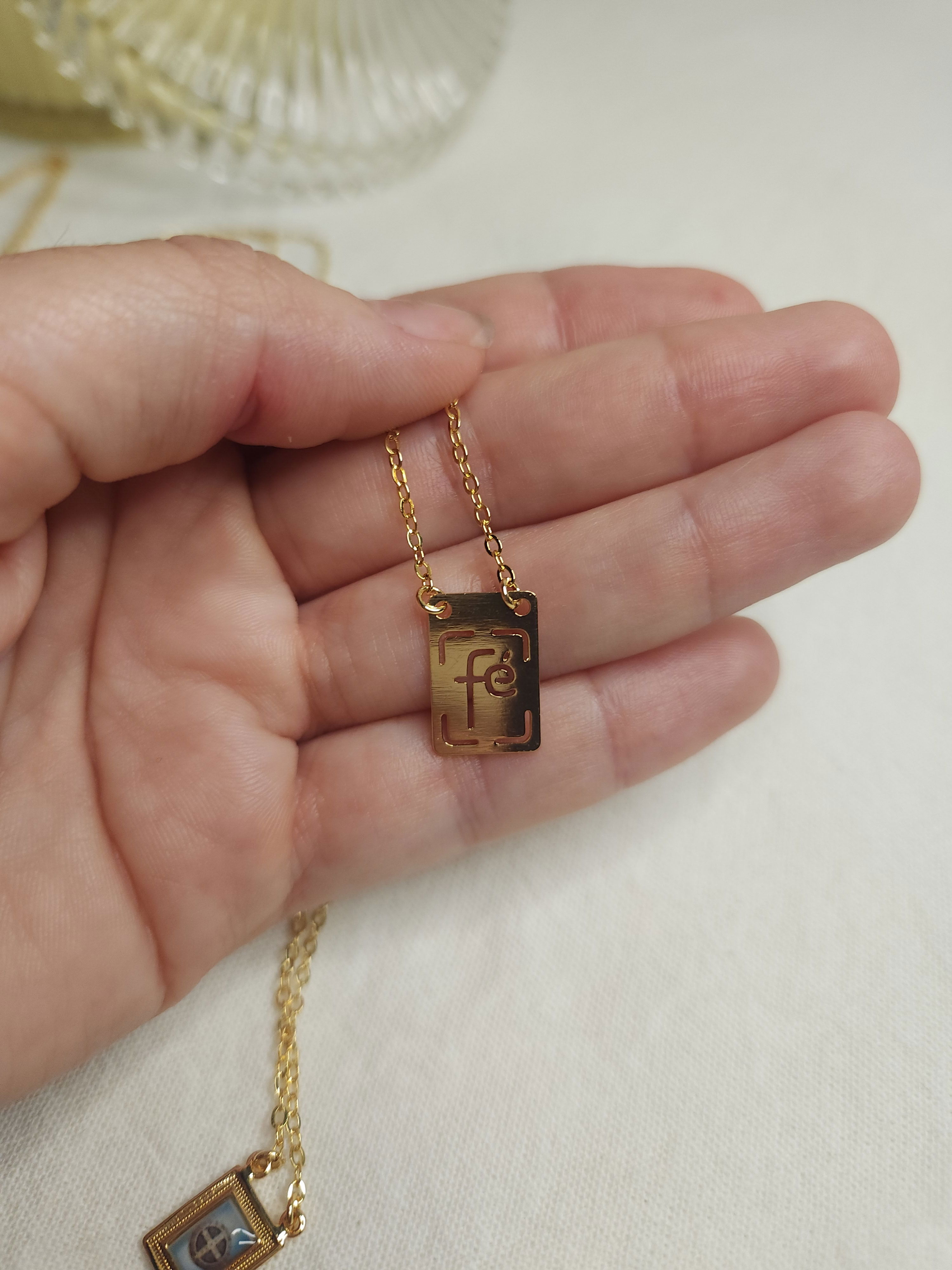 Medida dije escapulario Fe: 14,7mm x 9,7mm.