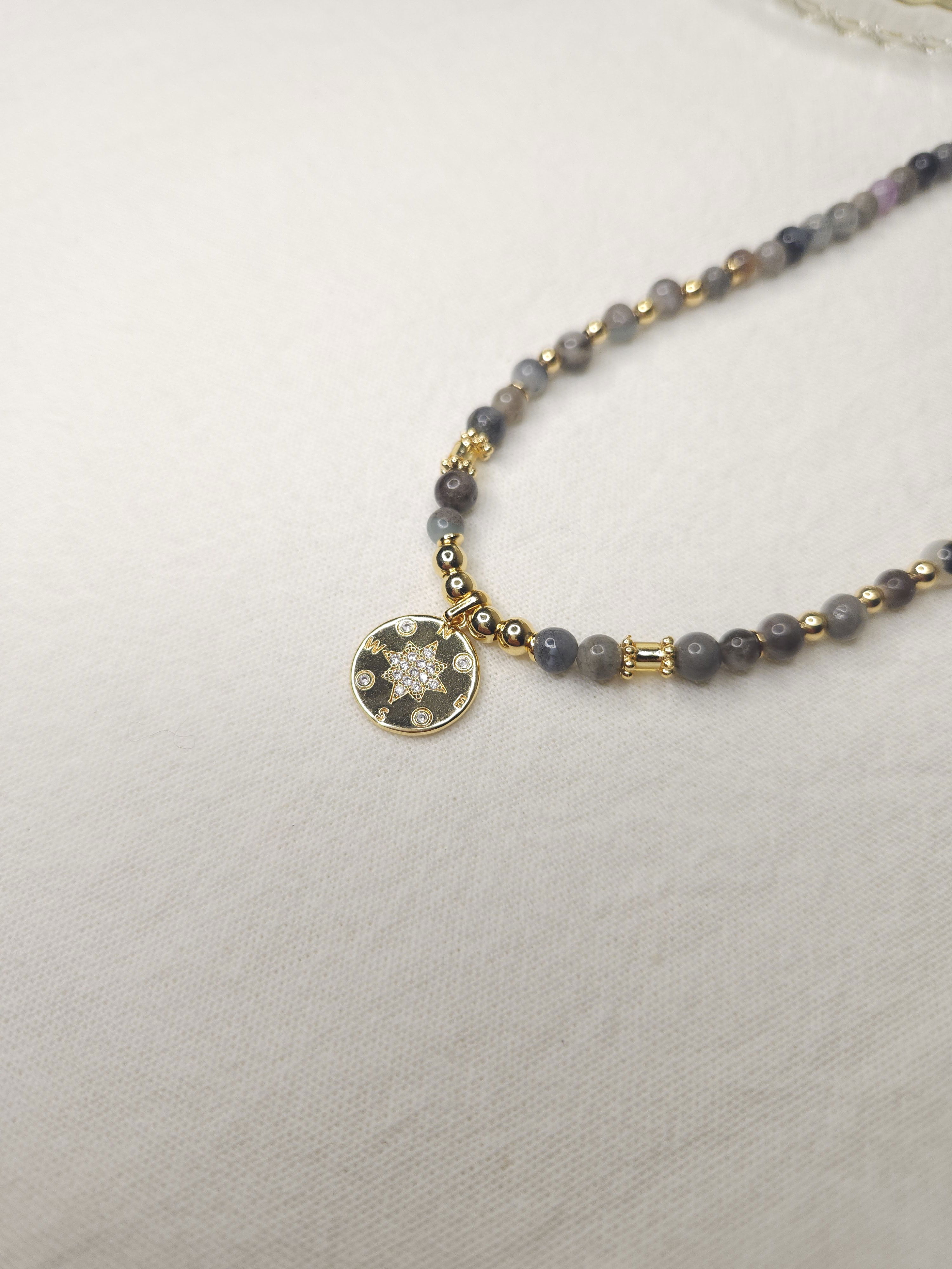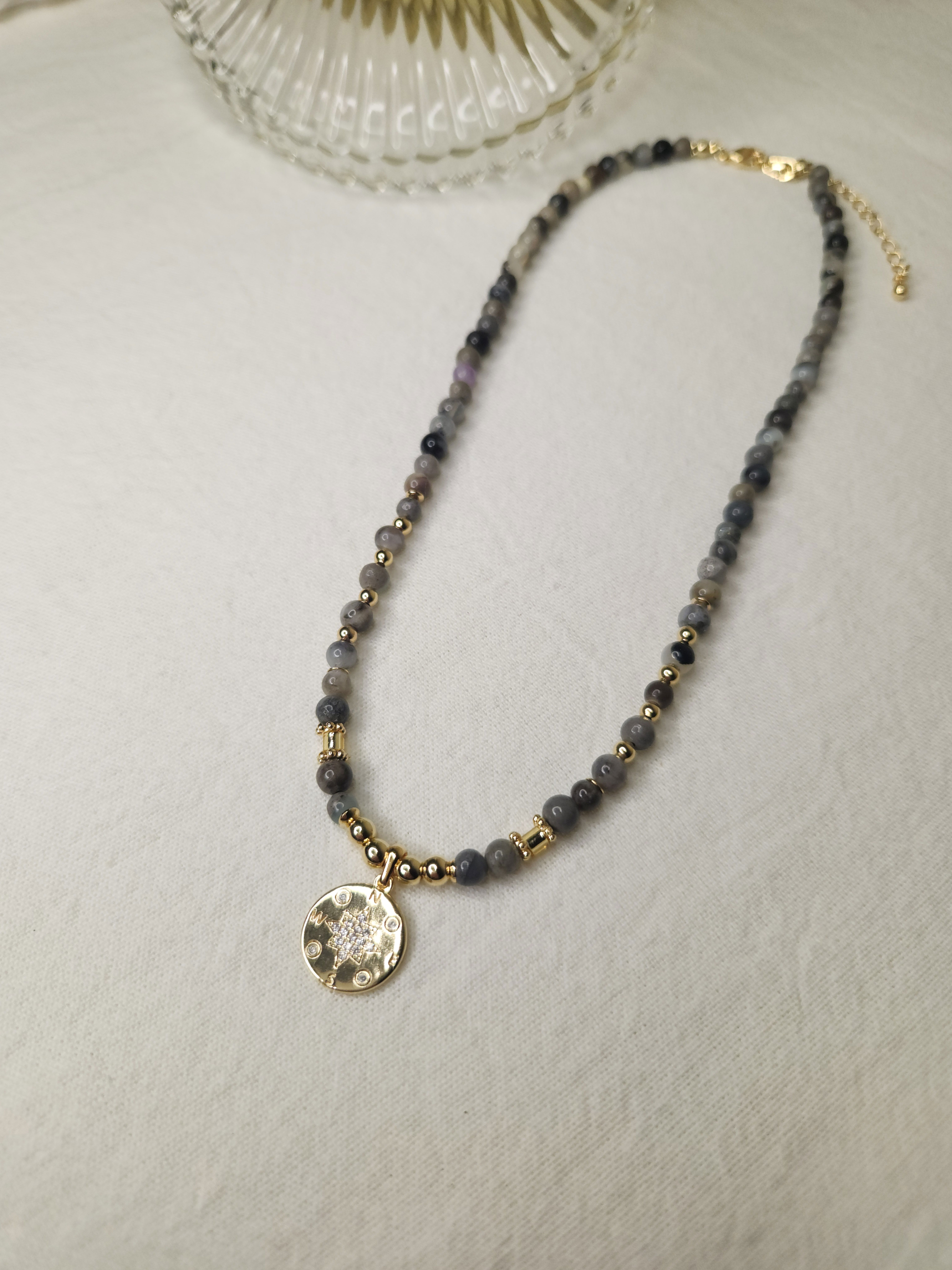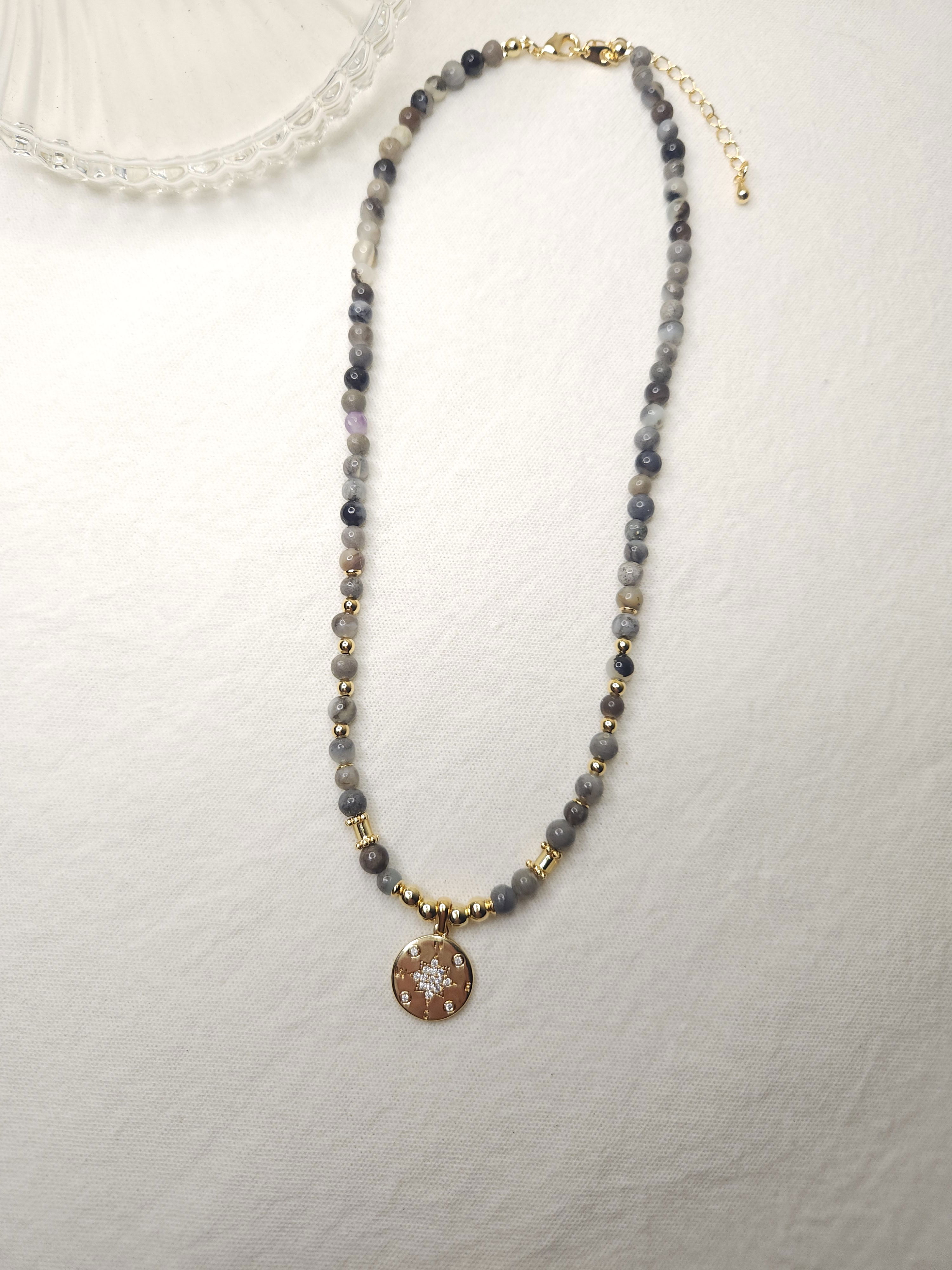Conjunto realizado con piedras naturales Ágata India de 4mm + separadores de Oro laminado + dije Brújula todo en oro laminado hipoalergenico.