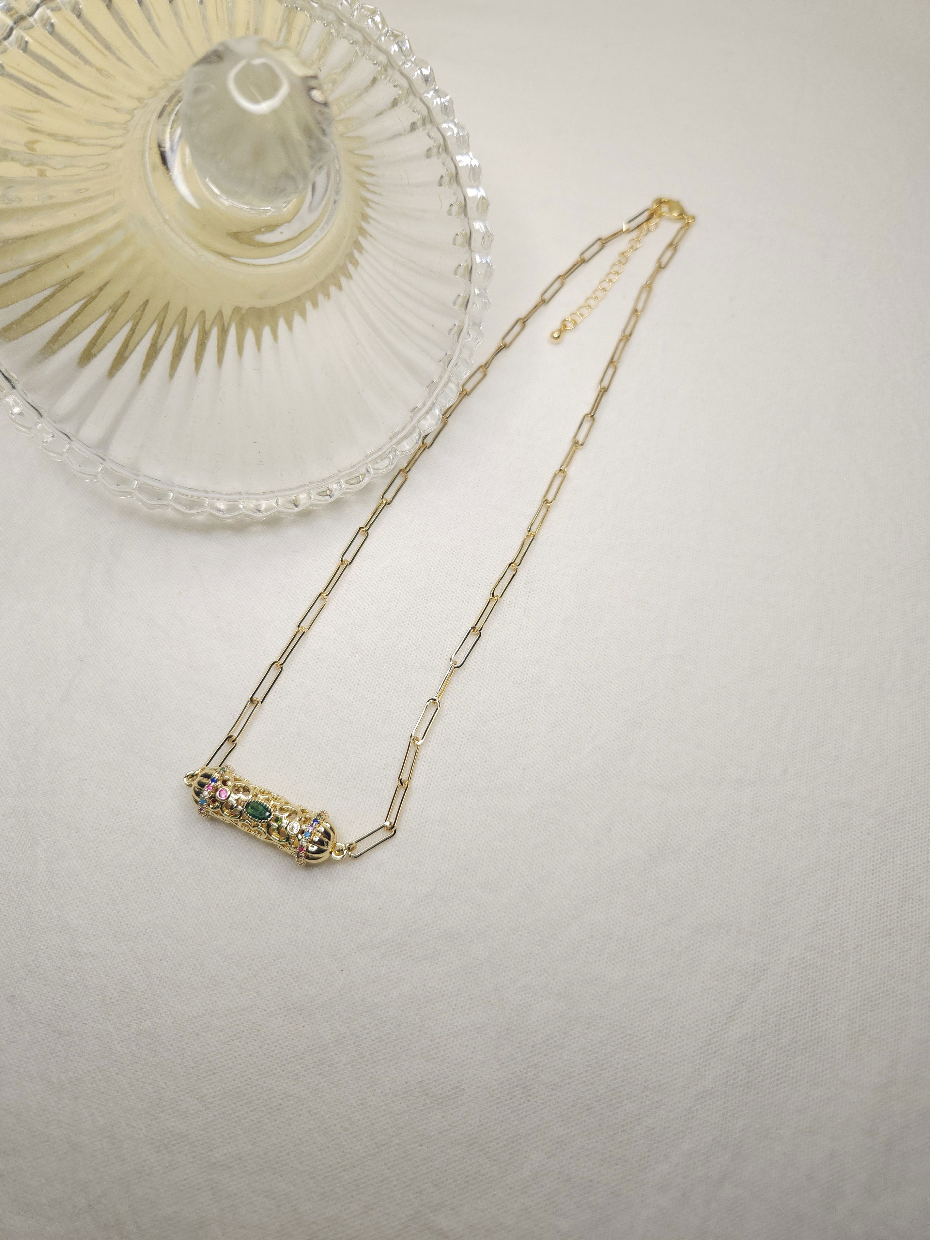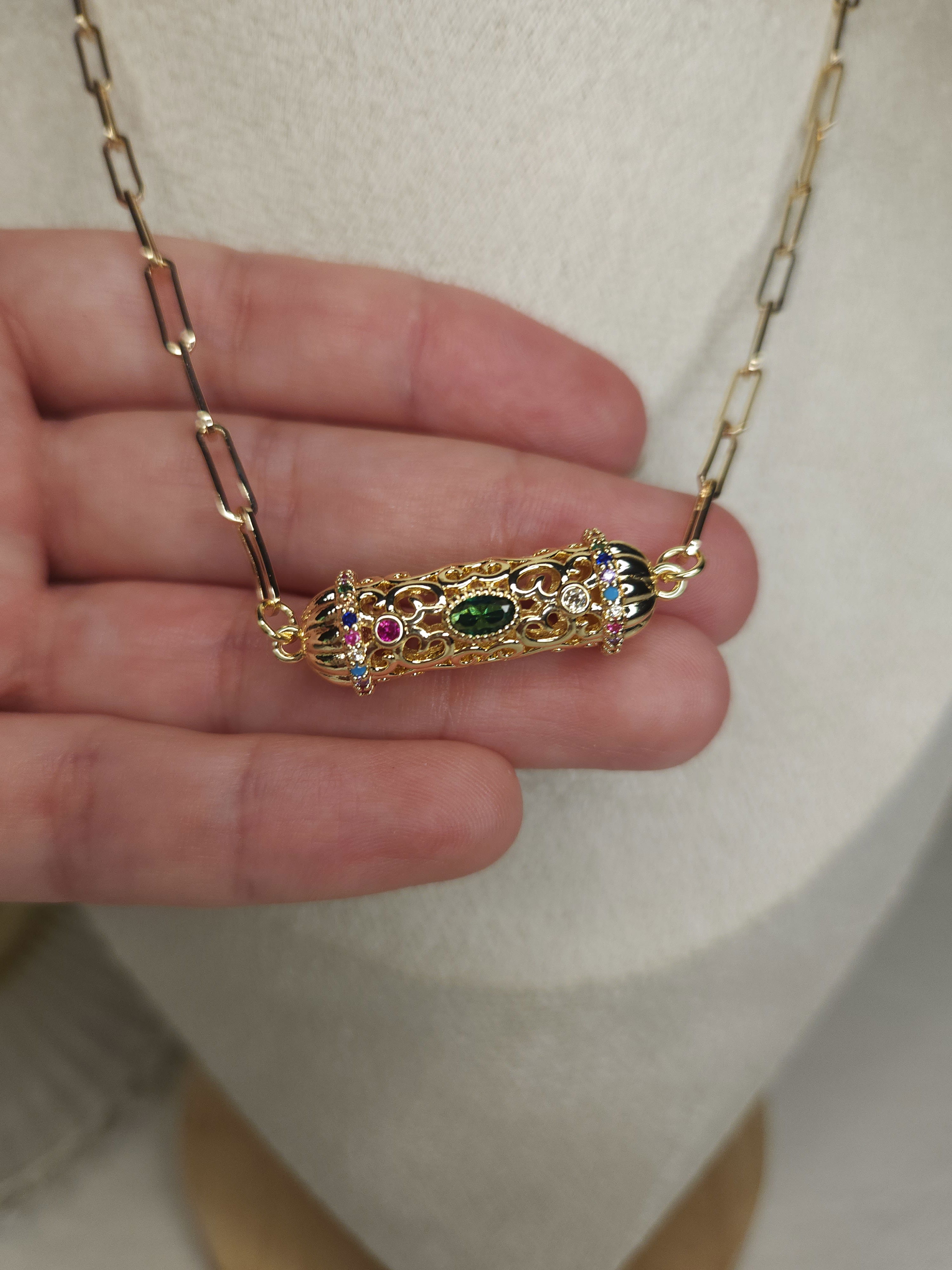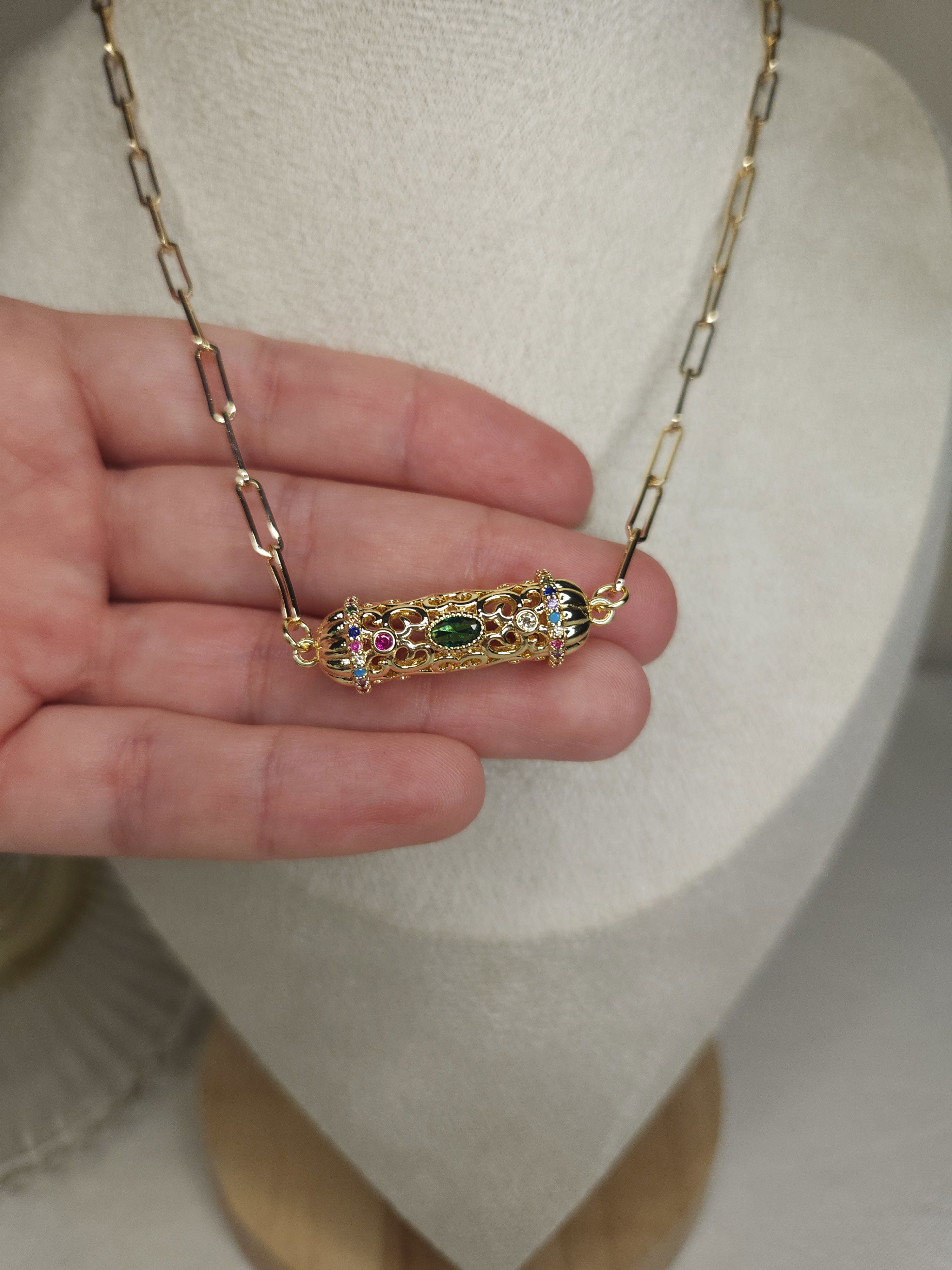 Conjunto en Oro Laminado hipoalergénico con cadena eslabón de 9,5mm x 2,8mm y dije Talismán Guardian con zirconias.