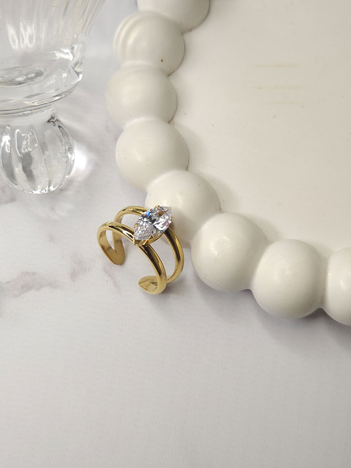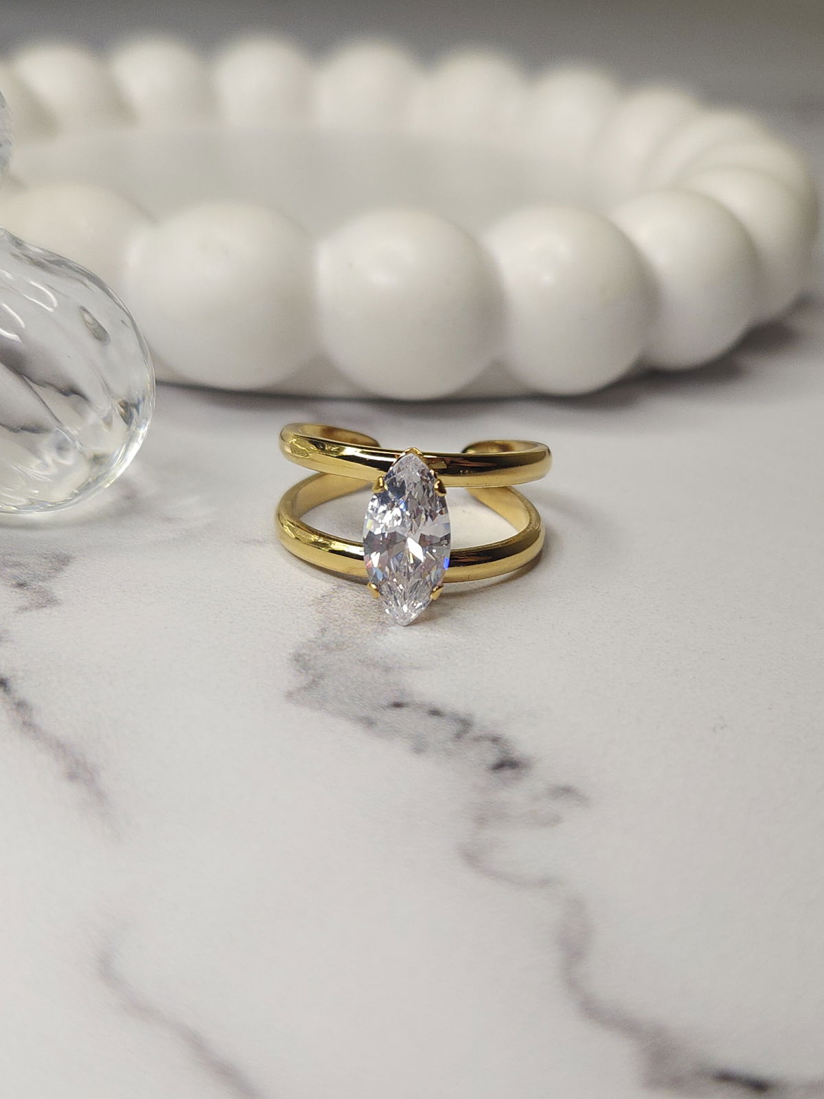 Anillo ajustable de acero inoxidable 304, enchapado en oro 18k, recubrimiento PVD, waterproof.