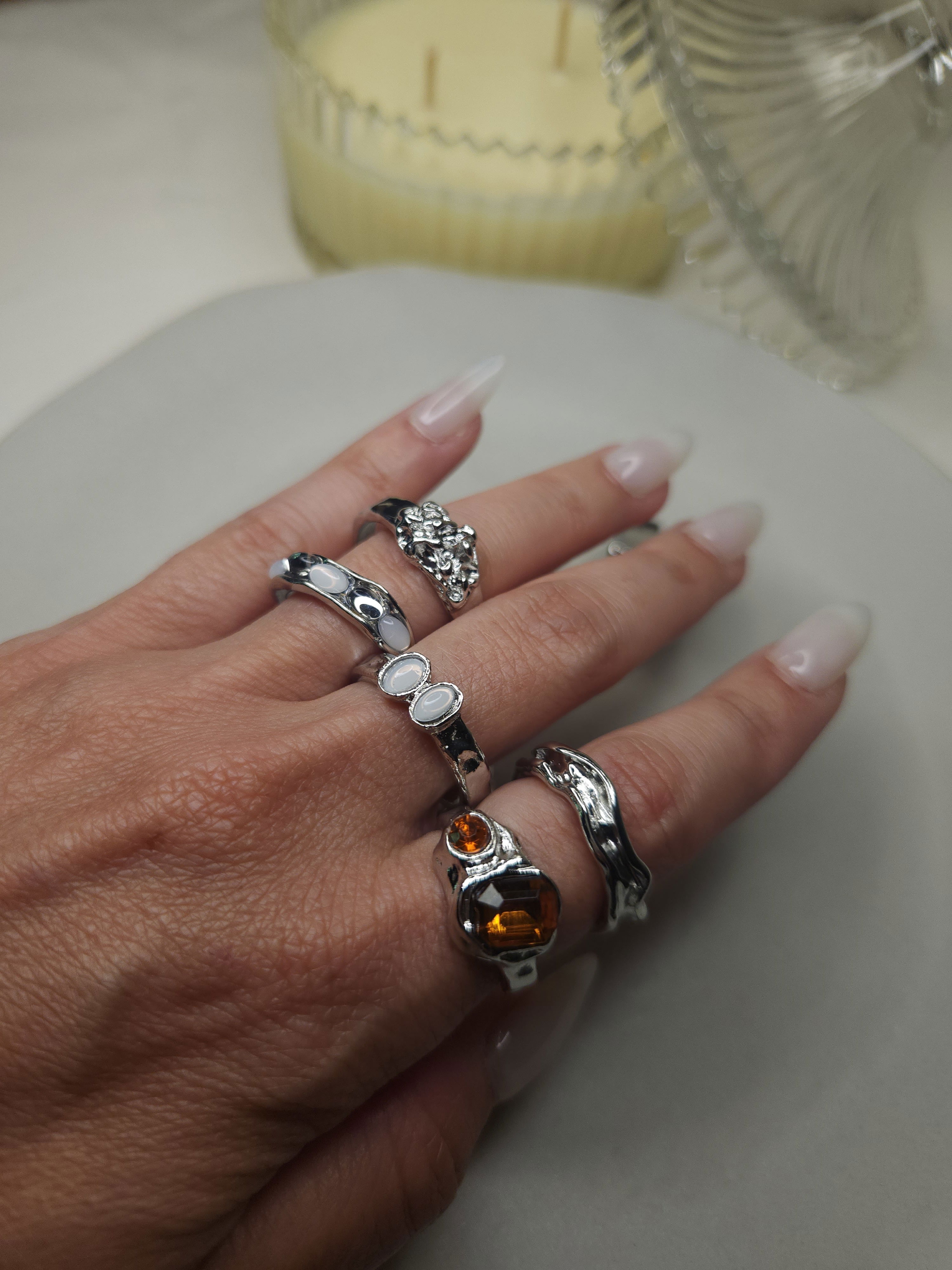 Anillos irregulares en acero blanco