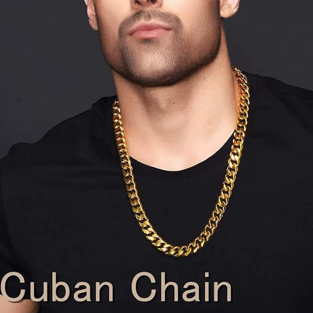 Estilo I: Cadena de 7 mm de espesor en acero quirurgico dorado.