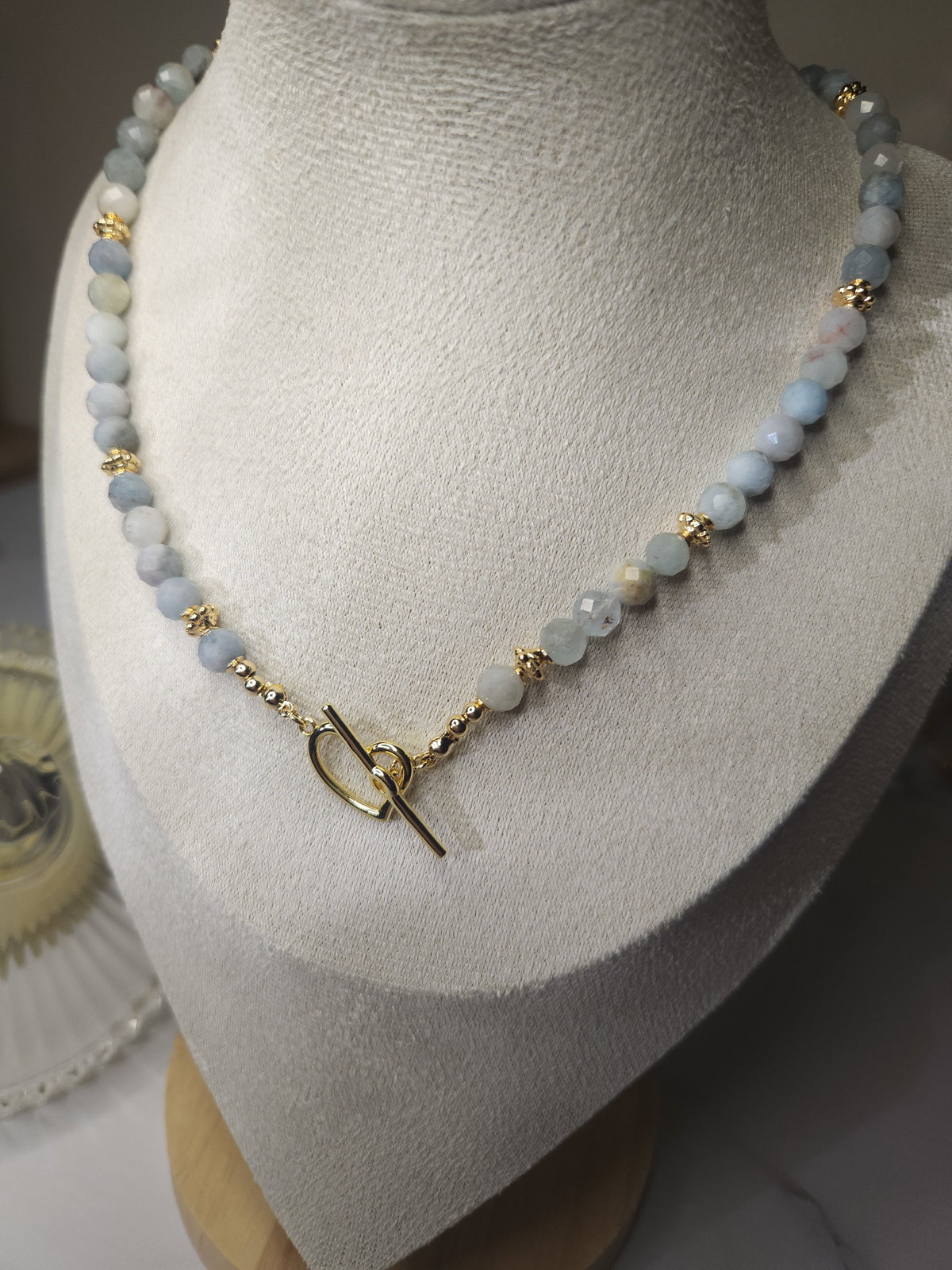 La aguamarina es una piedra asociada a la calma, la claridad y la comunicación consciente.