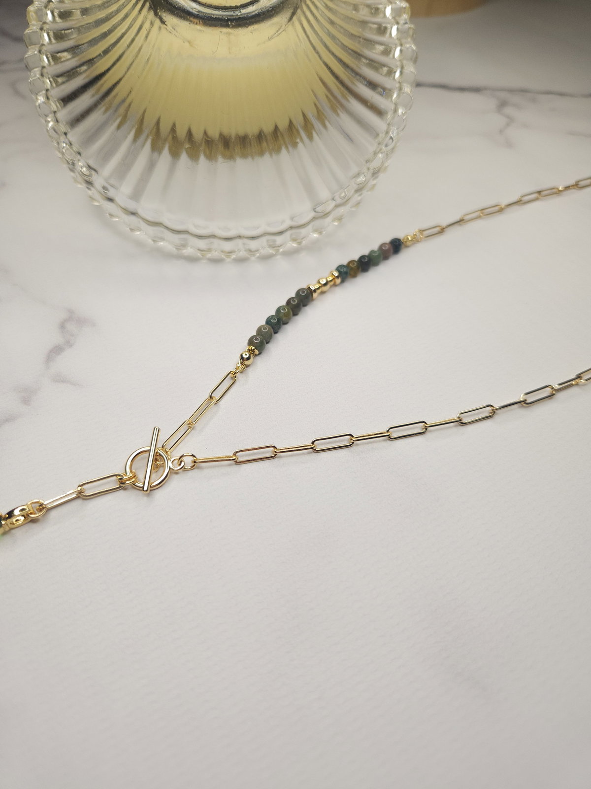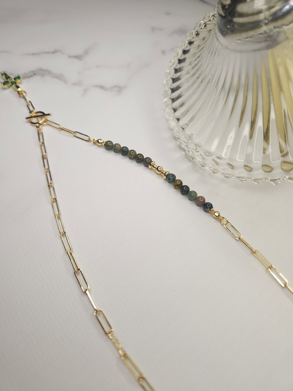 El ágata india es una variedad de ágata caracterizada por sus tonos verdes, marrones y rojizos, que evocan la naturaleza y el equilibrio. Se la asocia con la estabilidad emocional, la protección y la conexión con la energía de la tierra.