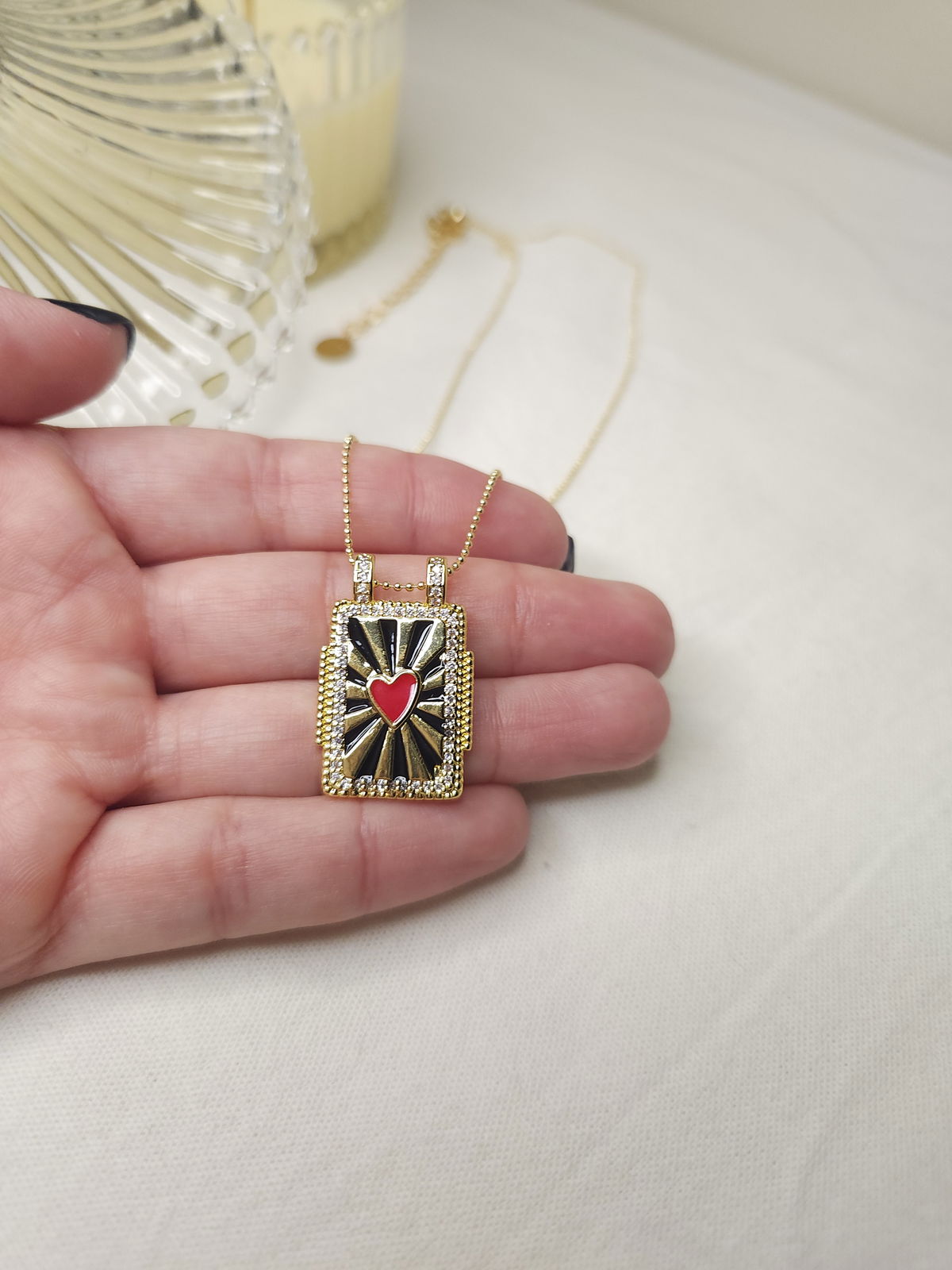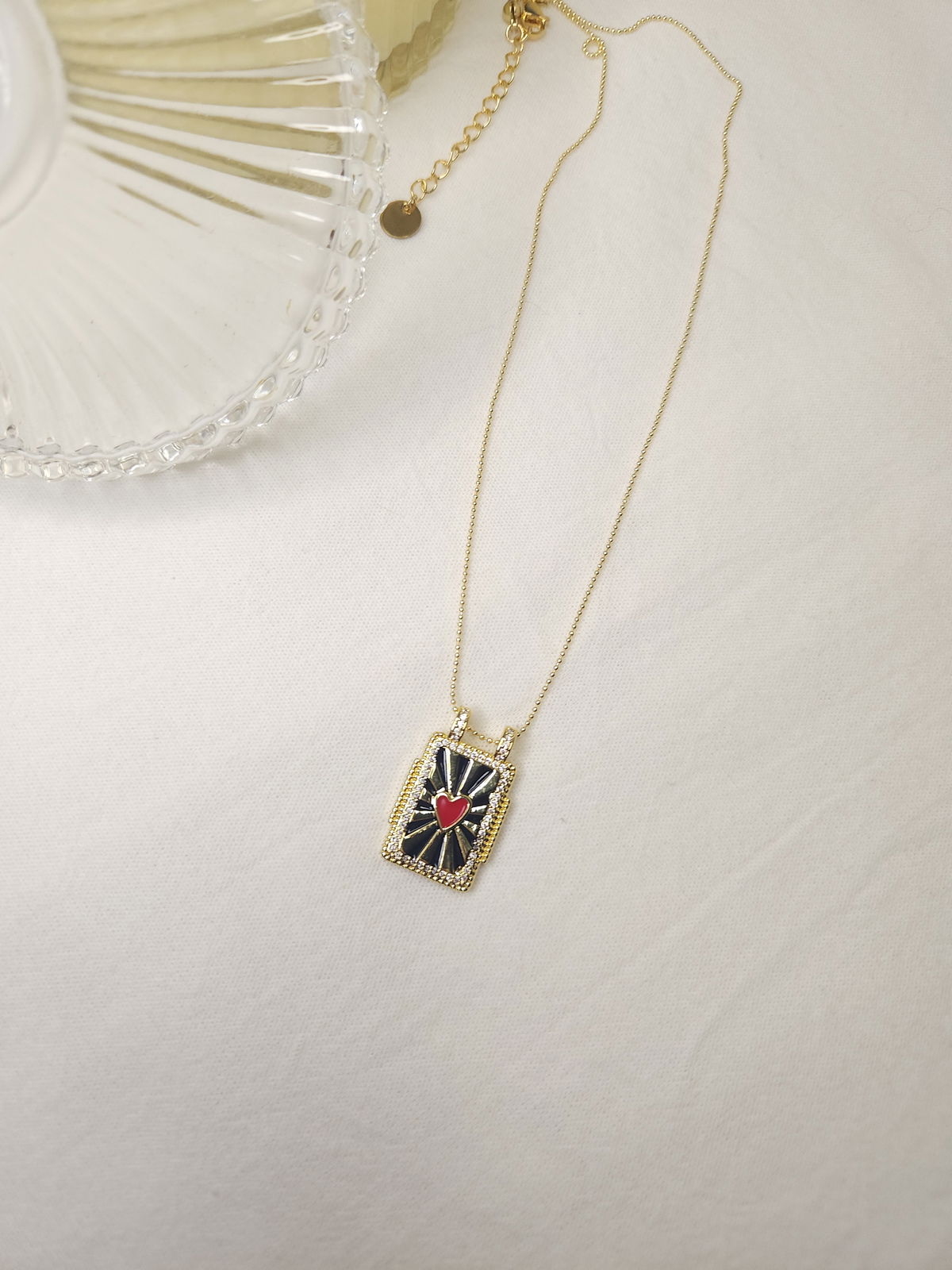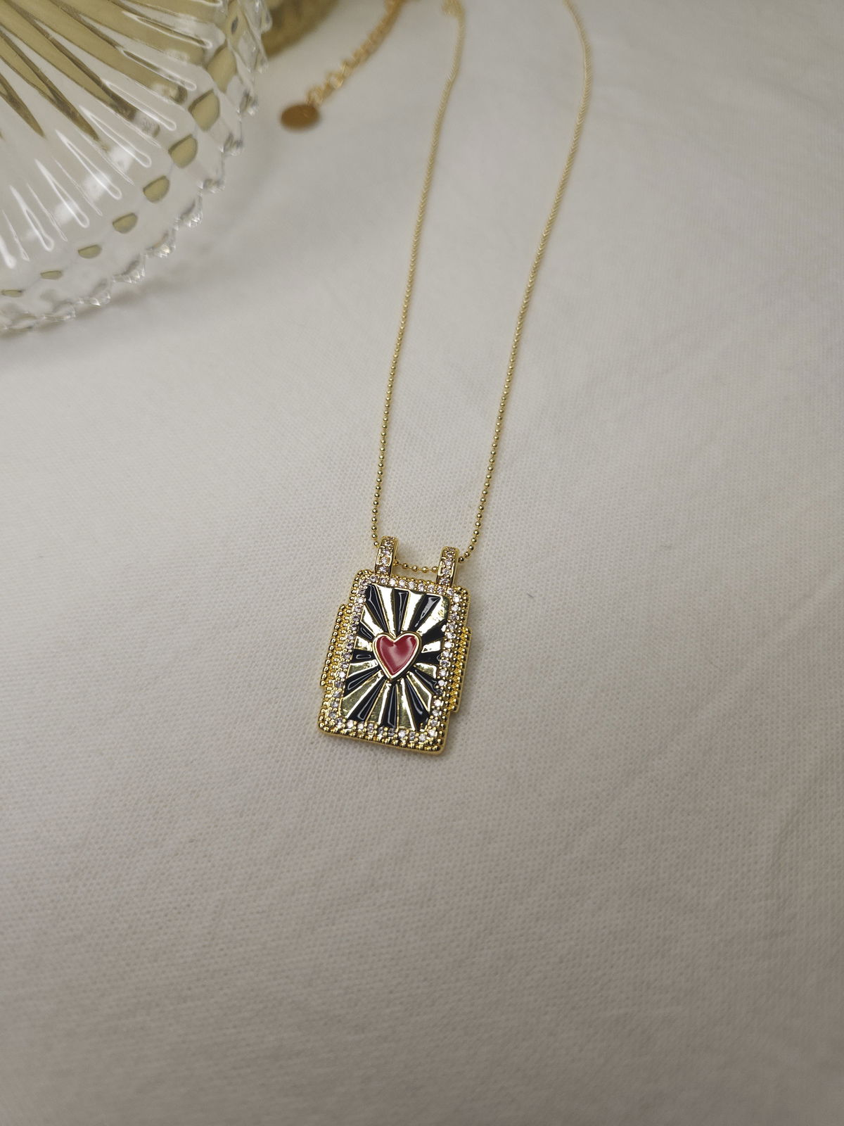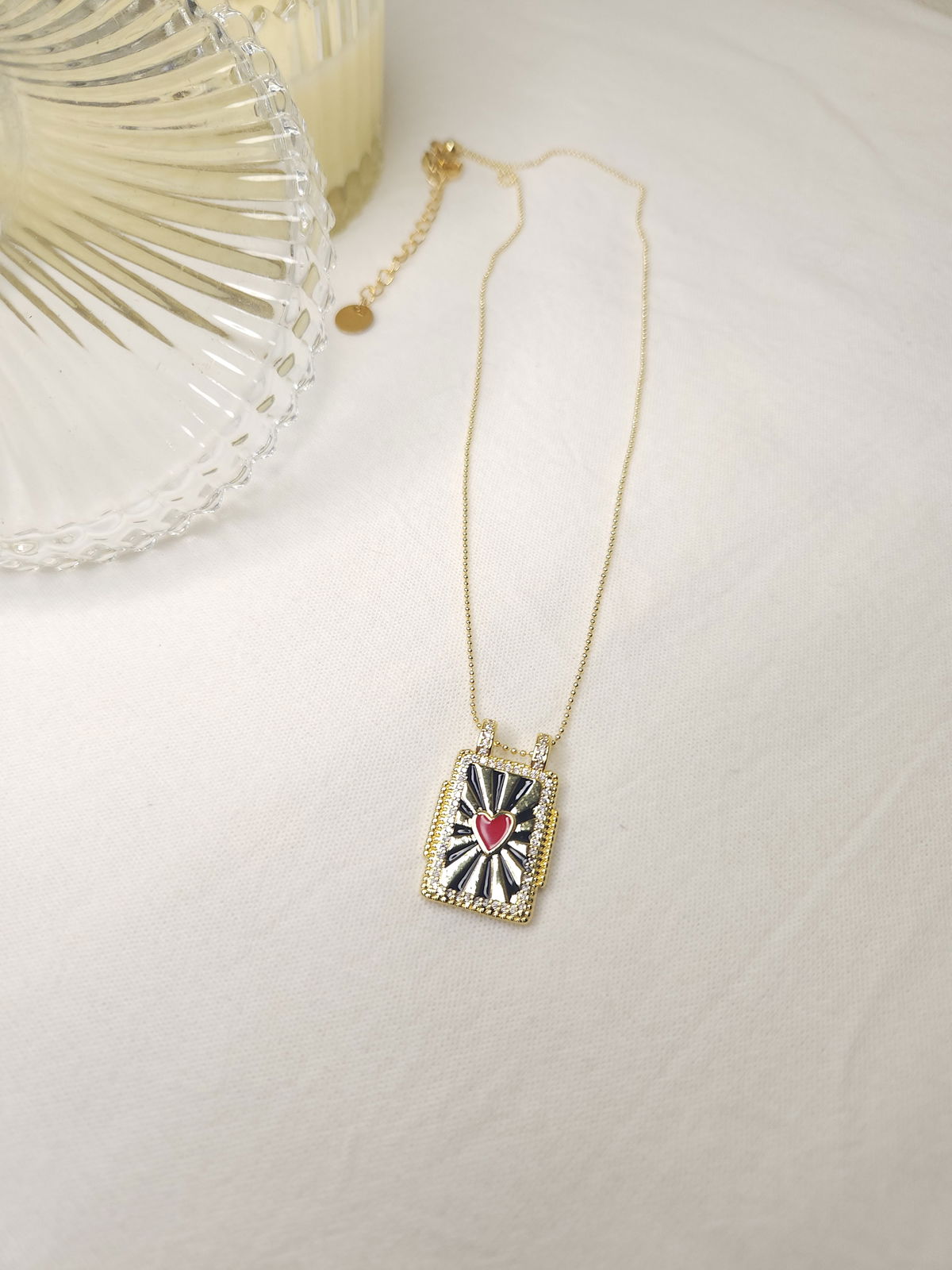 Conjunto en oro laminado con cadena finita militar y dije placa esmaltada corazón.