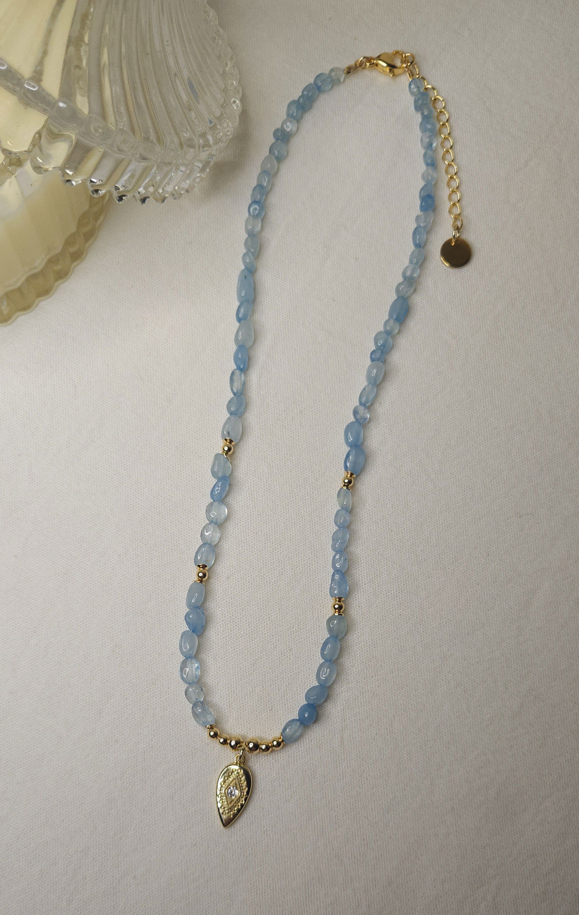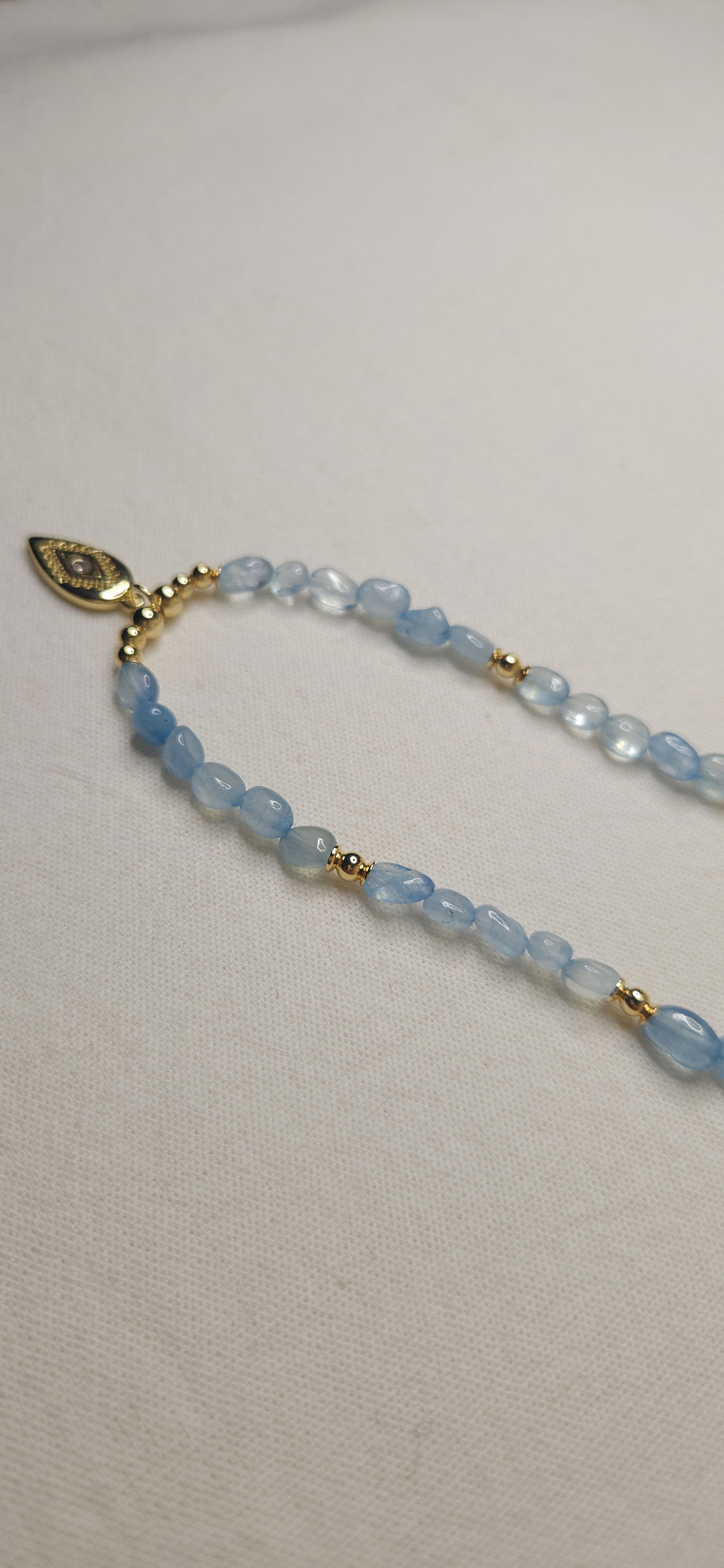 - La Aguamarina calma, mientras el Ojo Turco protege. Resultado: un amuleto que te hace sentir liviana, segura y en paz.
